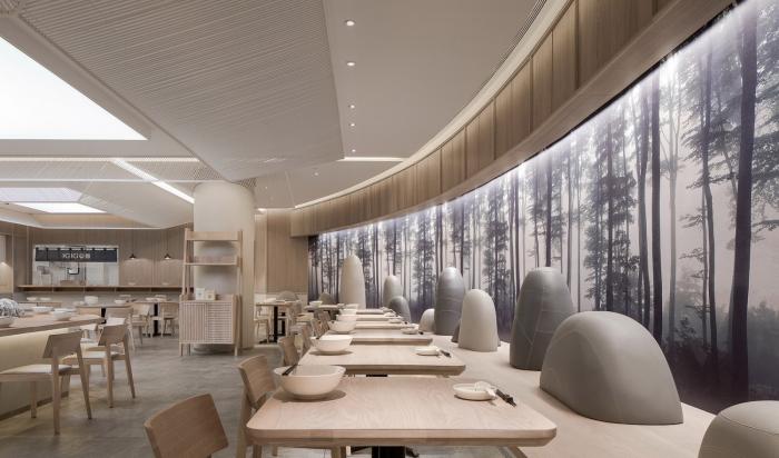 以綠色環(huán)保為重點(diǎn),在材料選擇,餐廳背景墻設(shè)計(jì),以及小的裝飾和點(diǎn)綴上都岀綠色、健康、自然。把餐廳設(shè)計(jì)成一個(gè)可以呼吸的生態(tài)系統(tǒng),讓人們?cè)谟貌椭芯湍荏w會(huì)到投身大自然的深刻感受。